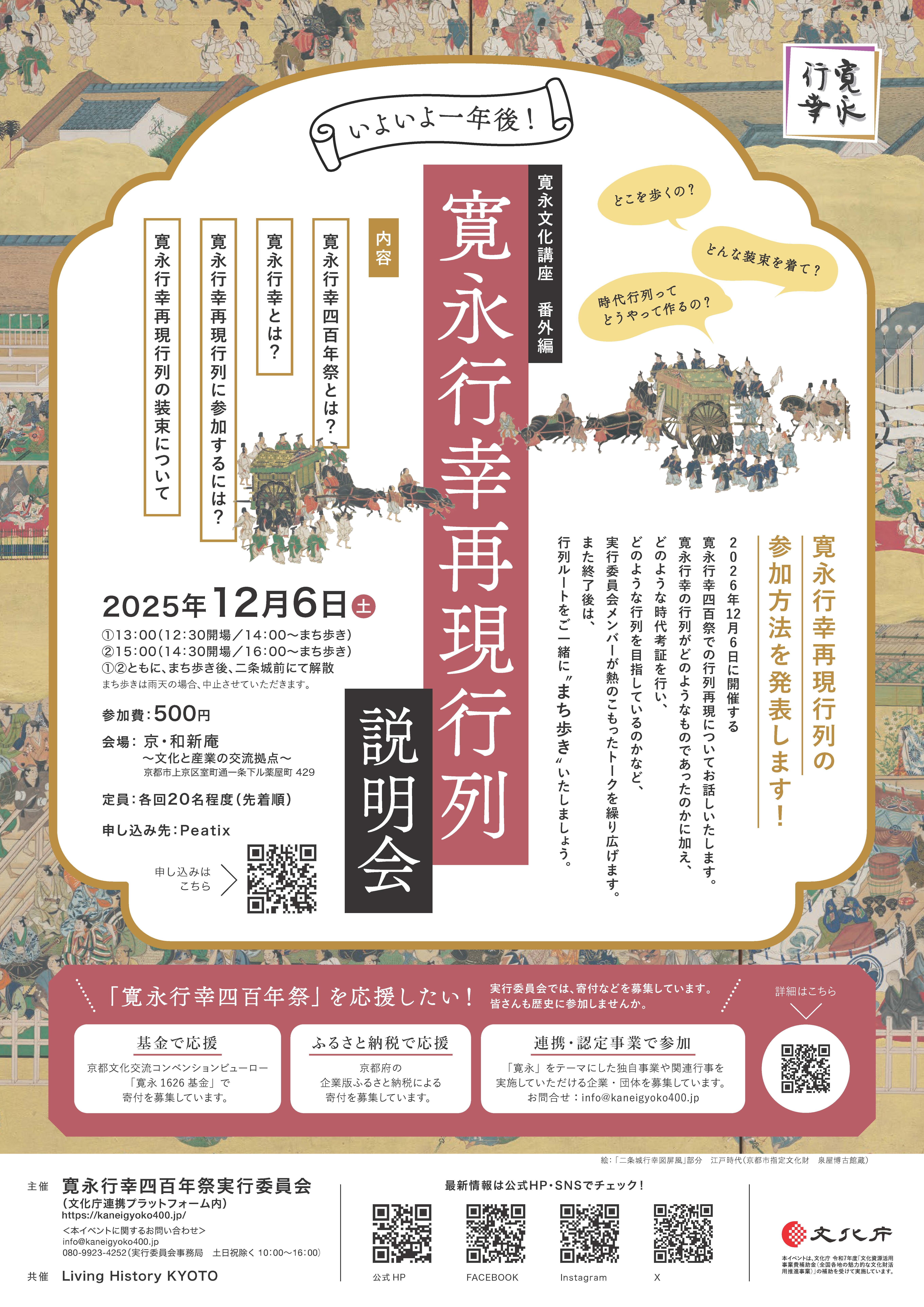 寛永文化講座 番外編【寛永行幸再現行列 説明会】開催のお知らせ(2025年12月6日)